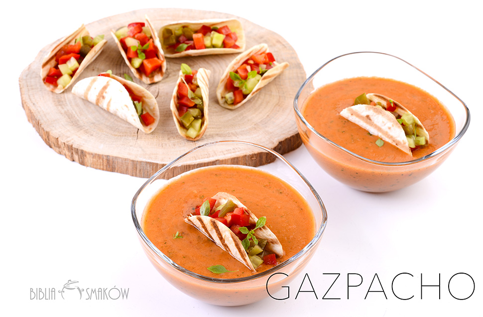 Pod tą obco brzmiąca nazwą, kryje się danie popularne na Półwyspie Iberyjskim tak, jak w naszym kraju chłodnik litewski. Oczywiste się wydaje, że w tak gorącym klimacie musiała powstać zupa nie wymagająca gotowania. Jest to znakomity posiłek na gorące dni – występujący w wielu odmianach, w każdym zakątku Hiszpanii. Dziś w wersji najbardziej podstawowej i tradycyjnej. Dodanie namoczonego chleba zagęszcza zupę i czyni ją bardziej sycącą. Jednak w wielu miejscach w Hiszpanii podaje się gazpacho wyłącznie na bazie oliwy i warzyw. Dlatego też jeśli dbamy o linię lub szukamy potraw bezglutenowych możemy spokojnie chleb pominąć. Warto spróbować zrobić gazpacho samodzielnie, bowiem przygotowanie go nie zajmuje wiele czasu, a efekt jest znakomity.
