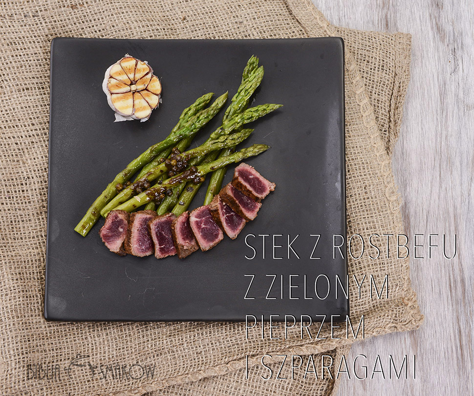 Stek z rostbefu z zielonym pieprzem i szparagami